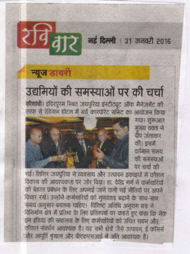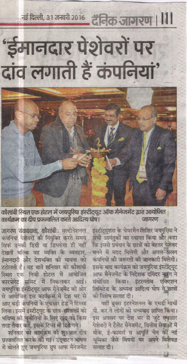 Shri Shishir Jaipuria (Chairman of Jaipuria Group of Management Institutions) highlighted that Industrial manufacturing companies are having difficulty filling jobs, even with relatively high unemployment rates in many countries. The problem is getting the right people for the available jobs. With ‘Make in India’, the manufacturing sector once again growing and profitable, but the industry is not drawing the talent it needs to support growth.