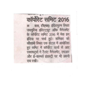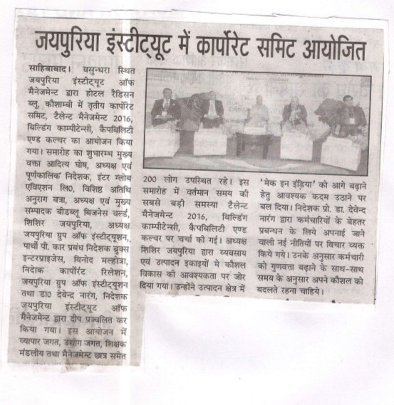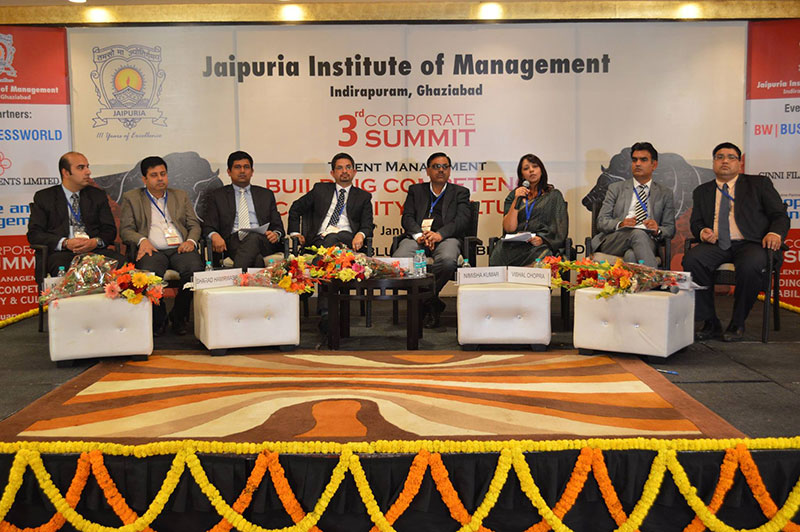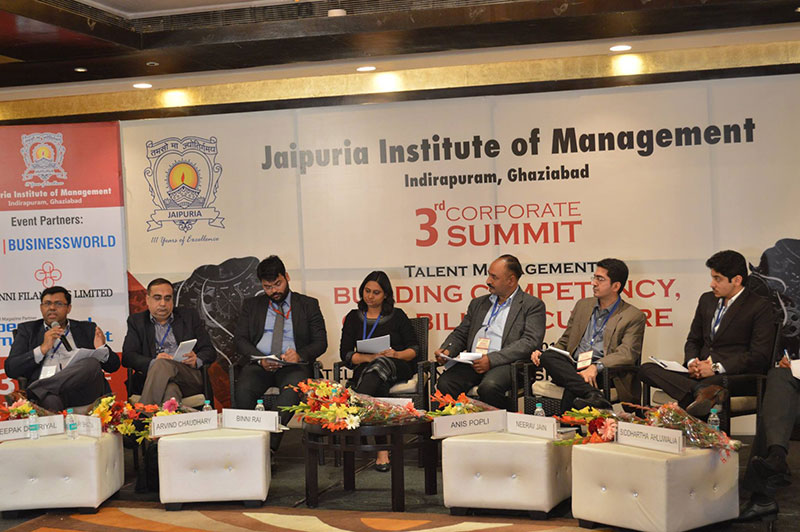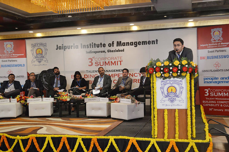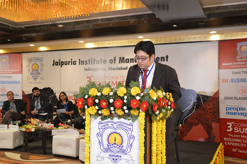 Jaipuria Institute of Management,Indirapuram, Ghaziabad organized Talent Management 2016 :Building Competency ,Capability & Culture on 30th January 2016 at hotel Radisson Blu ,Kaushambi, Ghaziabad. The summit was formally inaugurated by lighting a lamp by the Key Note Speaker Mr. Aditya Ghosh, President & Whole Time Director, InterGlobe Aviation Limited , Guest of Honour Mr. Annurag Batra,Chairman & Editor in Chief ,BW Businessworld , Shri Shishir Jaipuria (Chairman of Jaipuria Group of Institutions), Partho P kar Managing Director, Brookes Enterprises and Prof. (Dr.) Daveinder Narang (Director, Jaipuria Institute of Mangement, Indirapuram).