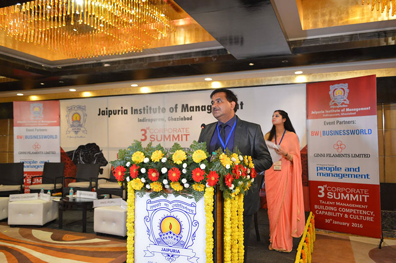 Prof.(Dr) Daviender Narang, Director, Jaipuria Institute of Management, Indirapuram, Ghaziabad delivered theme address during Inaugural session of Jaipuria Institute of Management, Indirapuram, Ghaziabad, 3rd Corporate Summit on Talent Management 2016 Building Competency, Capability & Culture on 30th Jan, 2016 at Hotel Radisson Blu, Kaushambi, Ghaziabad.