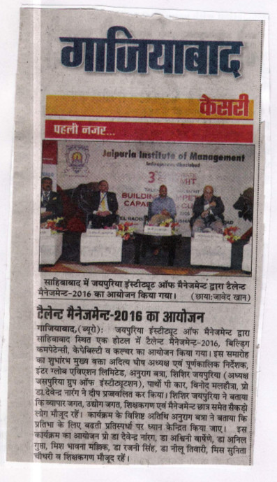 Prof (Dr.) Daviender Narang, Director of Jaipuria Institute of Management stressed that the success mantra for managing talent is to adapt, upgrade, modify and change as per requirements. Inspired thinking and creative thinking is more important than ever before.
