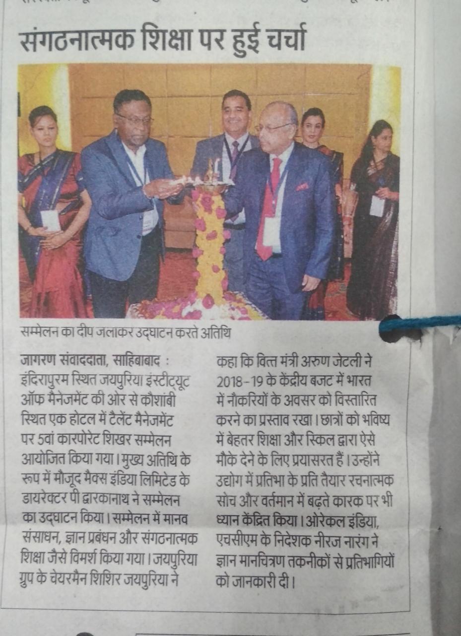 The summit was formally inaugurated by lighting of lamp by theChief Guest,Mr. P. Dwarakanath, Director – Group Human Capital, Max India Ltd,Mr. ShishirJaipuria, Chairman, Jaipuria Group of Educational Institutions,Prof.(Dr) Daviender Narang, Director, Jaipuria Institute of Management, Indirapuram, Ghaziabad, Mr. Partho P Kar, MD, Brookes Enterprises.